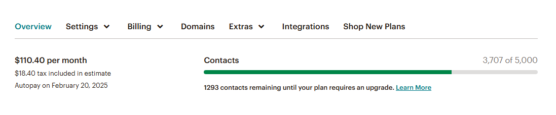 Go into your billing and take a look at the contact tier you’re paying for and take note of the plan name while you’re there (e.g. Essentials/Standard)*. Does it accurately reflect the number of contacts you actually have?